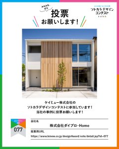 外壁材メーカー ケイミュー株式会社主催の「ソトカラデザインコンテスト」において最終審査に選出されました。