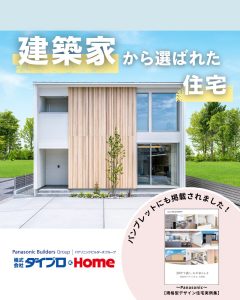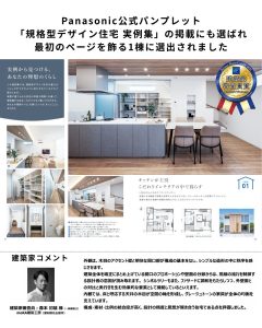 さらに、Panasonic公式パンフレット「規格型デザイン住宅 実例集」では巻頭ページに掲載。 数ある実例の中から、最初の1ページ目に選ばれました。